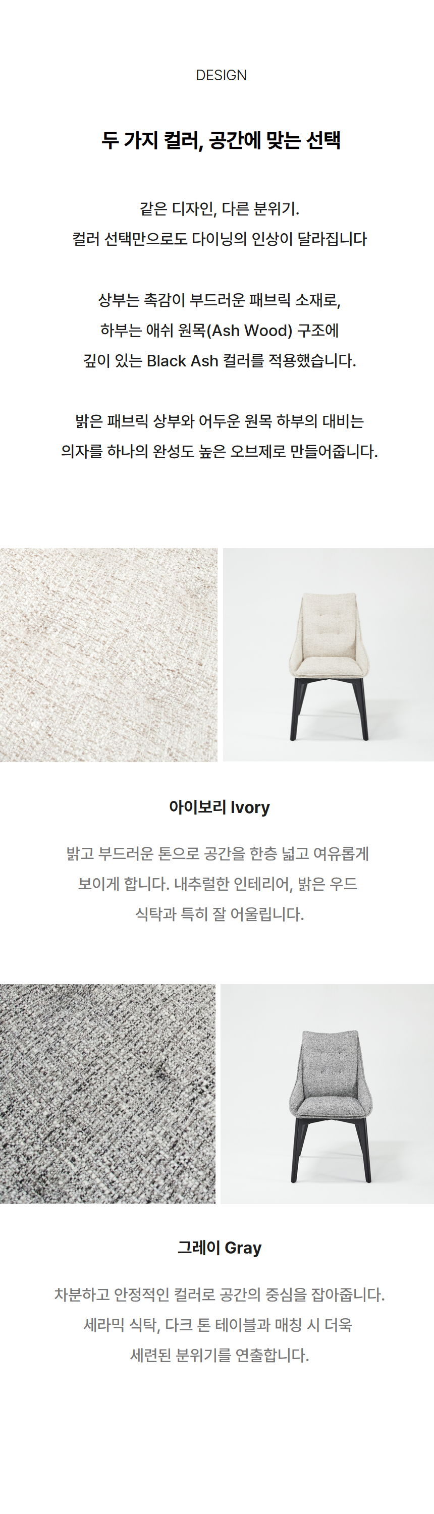 피노 다이닝 체어는 군더더기 없는 실루엣과 안정적인 착좌감으로